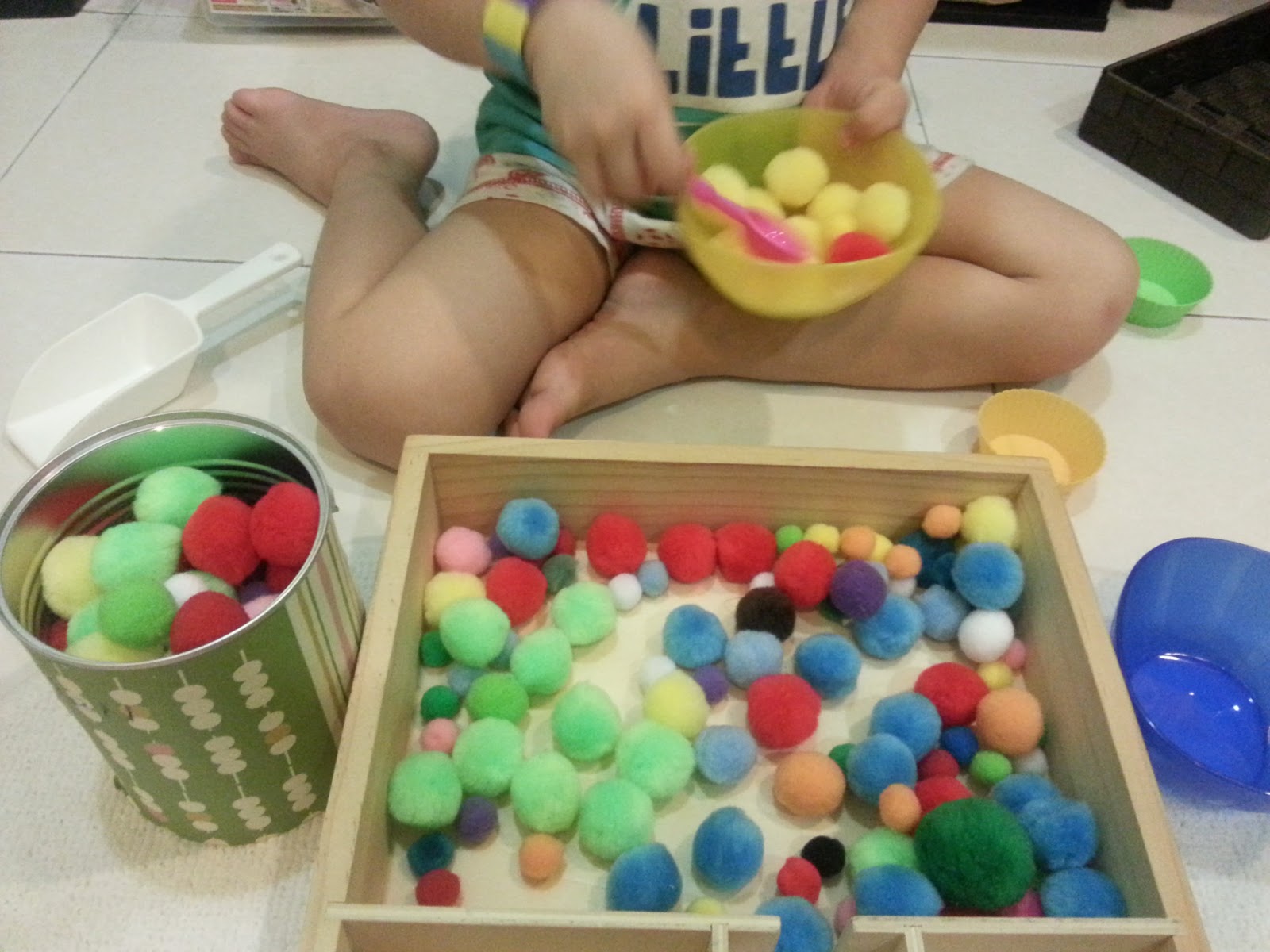Then, we debated over a dull green pom-pom. He insisted it was grey.